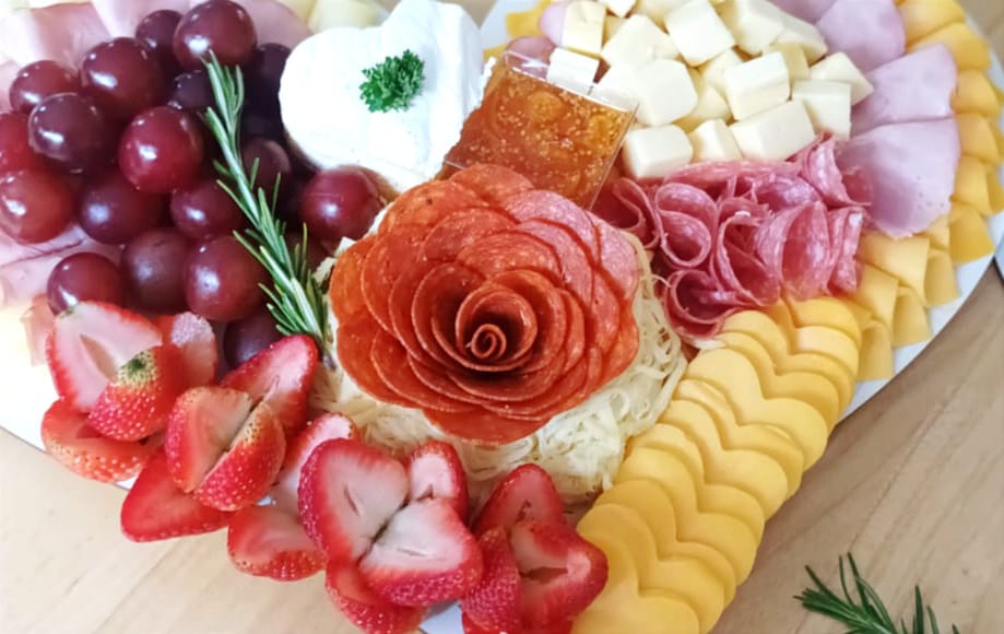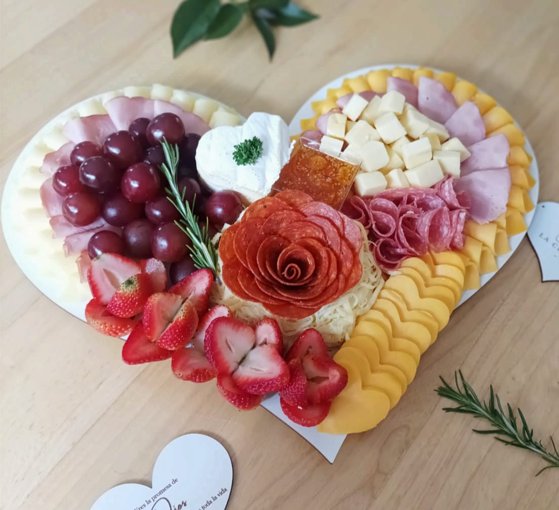 Nuestra linda y deliciosa tabla de amor en forma de corazón para 8 – 10 personas cuenta con: