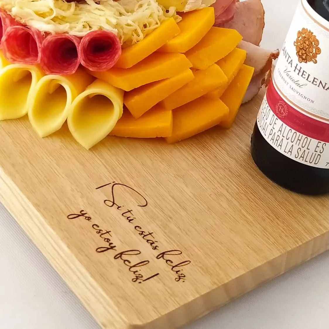 - Tabla de madera pino natural de 19 cm x 30 cm con leyenda “Si tú estás feliz, yo estoy feliz”