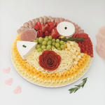 Nuestras tablas de quesos para 15-18 personas viene presentada en un soporte de 44 cm de diámetro y contiene 3.000gr aprox de producto los cuales son: