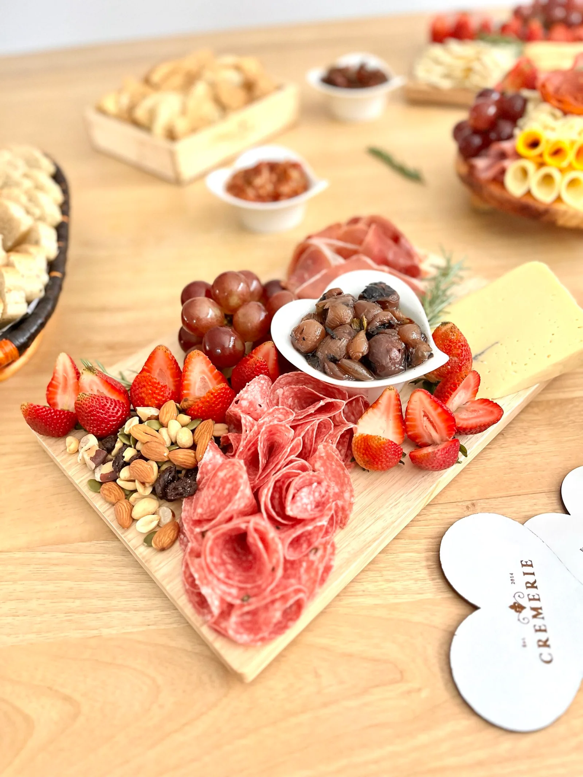 5 adicionales: Fruta Fresca ( uva y fresa), Frutos secos, Hojitas crujientes de finas hierbas y parmesano, Palitroques, Panera con pan Focaccia Artesanal,Encurtidos ( Depende disponibilidad puede ser cebollitas asadas, pimentones en aceite de oliva o corazones de alcachofa)